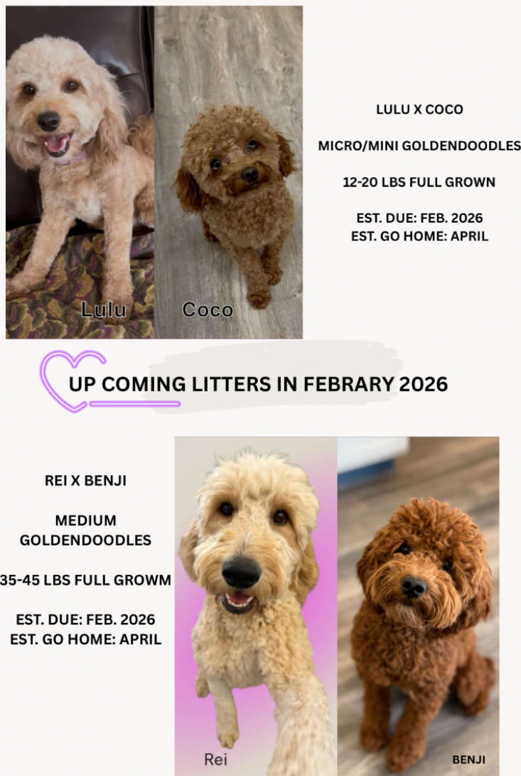 We're planning on having Lulu & Coco's Mini Goldendoodles & Rei x Benji's Medium Goldendoodles in February 2026!